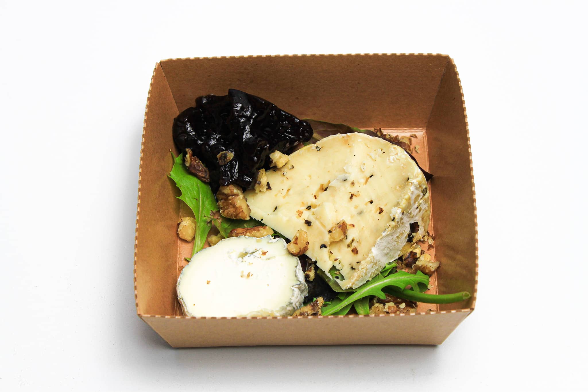 Une formule comprend une salade gourmande composée de produits frais ainsi qu'un dessert maison